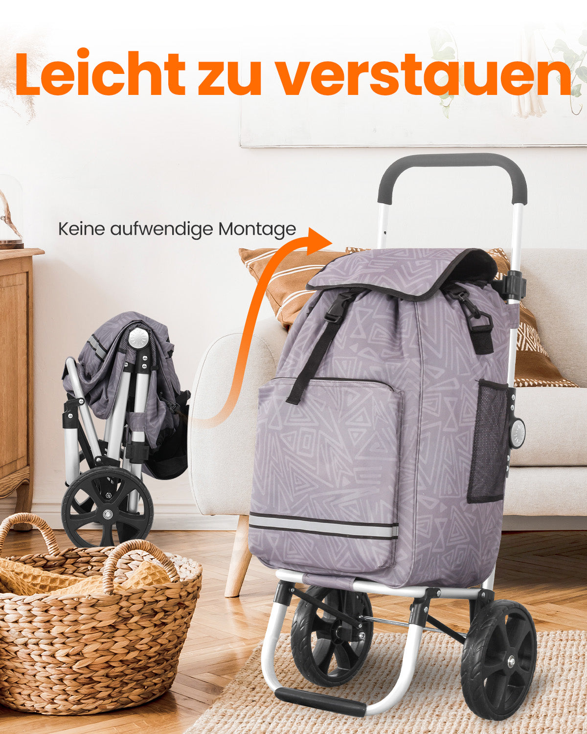 • DURABLE MATERIAL AND LOAD CAPACITY - Thanks to the lightweight aluminum frame and durable 600D Oxford fabric, Homcall shopping trolley with large wheels offers high load capacity and durability. The trolley supports stably up to 35 kg, and the static load capacity is up to 50 kg. This makes the shopping trolley ideal for large and heavy purchases without losing stability.