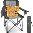 - Excellent Weight Capacity This heavy duty camping chair features high-strength steel tubes (22mm), which can support weights of up to 360kg and provide you with durability and safety.