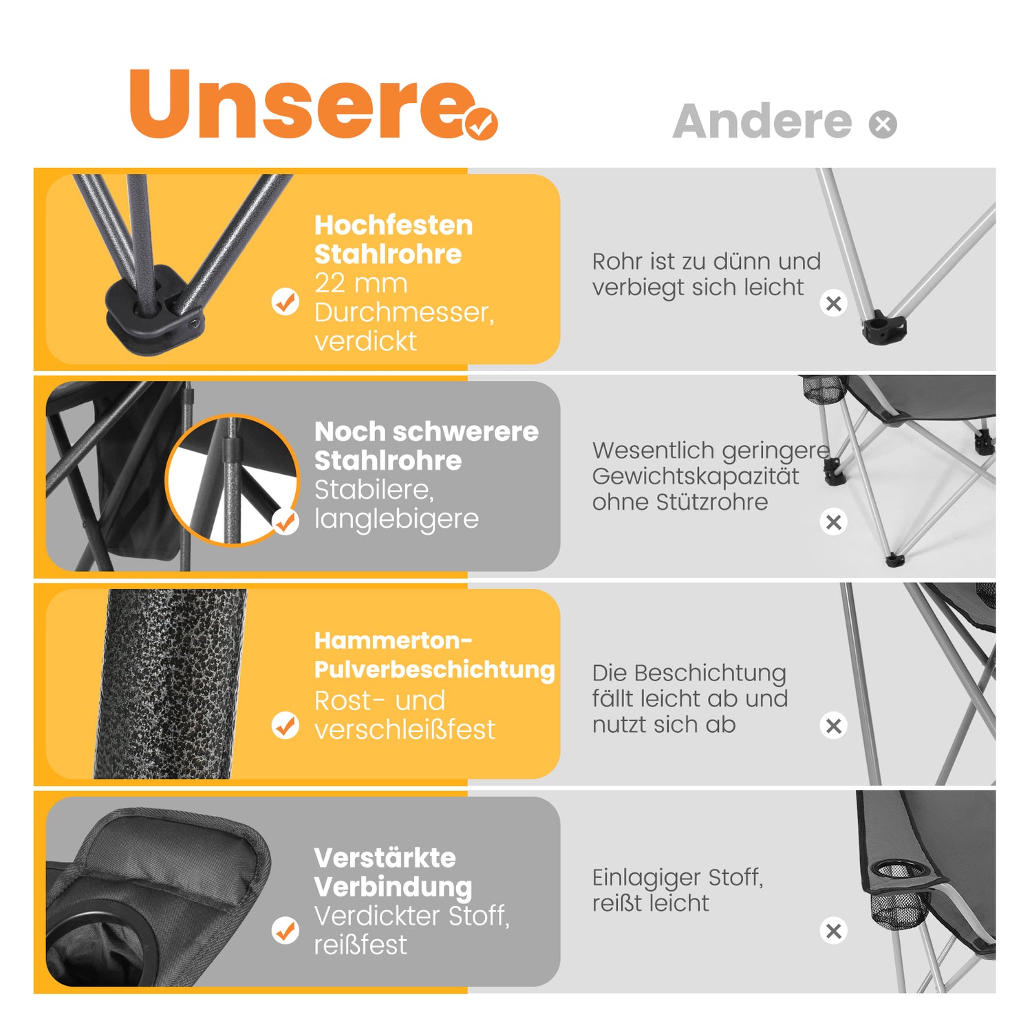 Homecall Camping Chairs, Foldable, Up to 360 kg, Ultra Large Camping Chair with High Backrest, Fully Padded, Robust and Reliable Folding Chair Camping for Outdoor, Balcony, Garden, Fishing, XXL