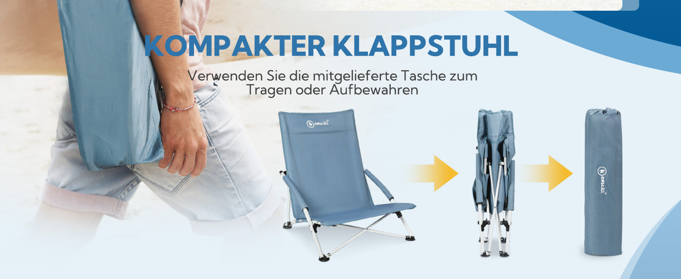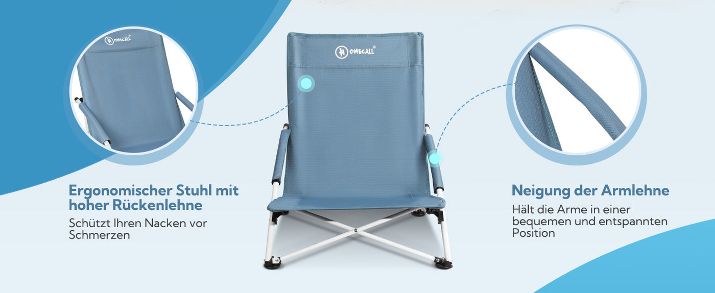 HOMECALL Folding Beach Chair Lightweight Low Camping Chair Comfortable Backrest, Padded Armrests, up to 120kg