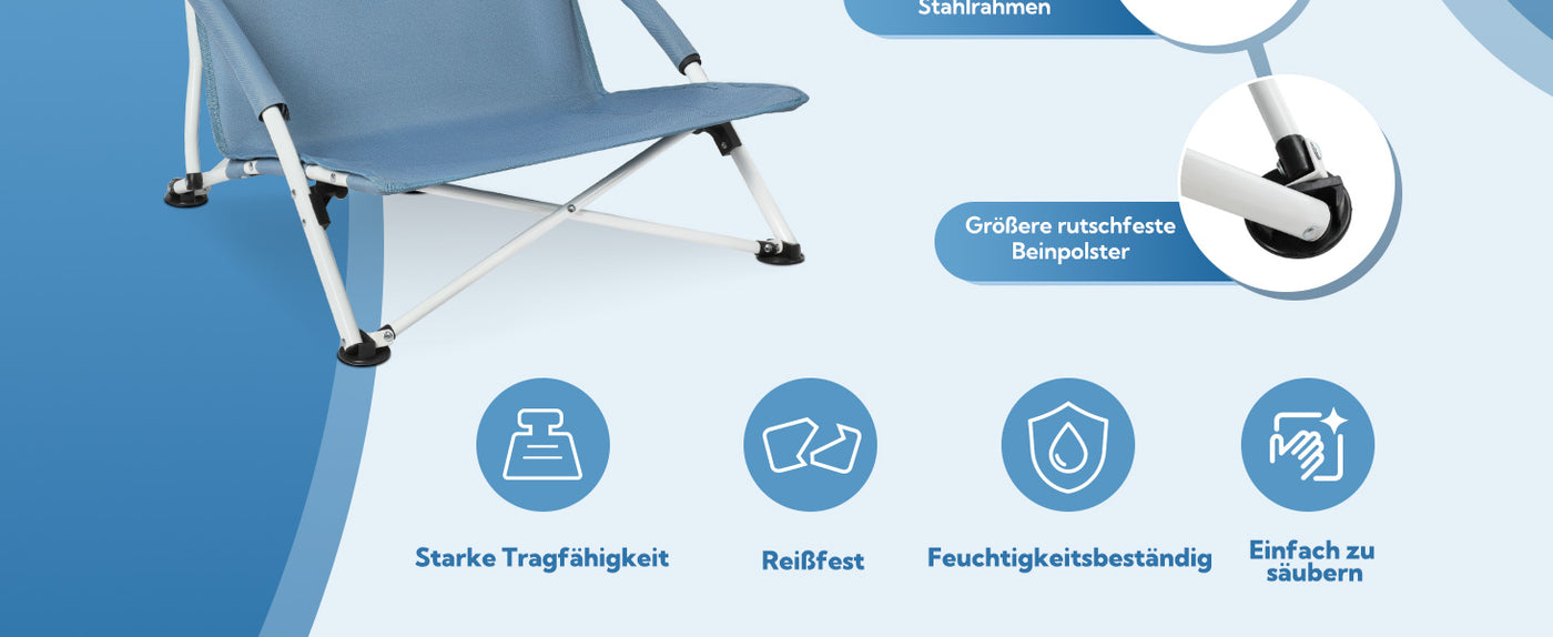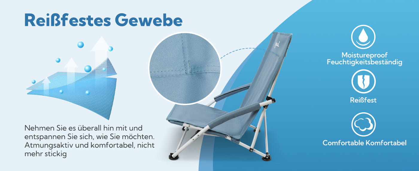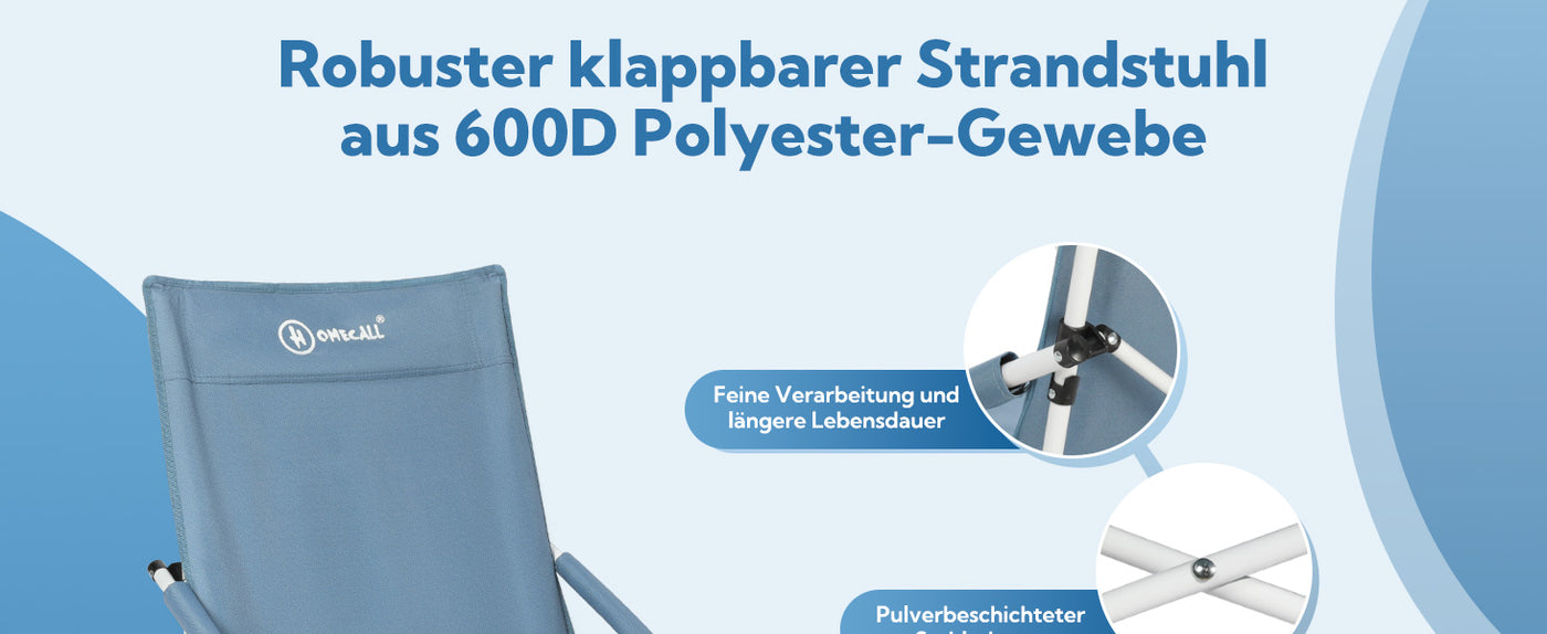 Made from high-quality 600D polyester material, this chair is both tear-resistant and moisture-resistant, making it a great choice for outdoor use. The powder-coated tubular steel frame offers excellent stability and can support up to 120 kg, allowing you to sit comfortably for hours and sit safely.